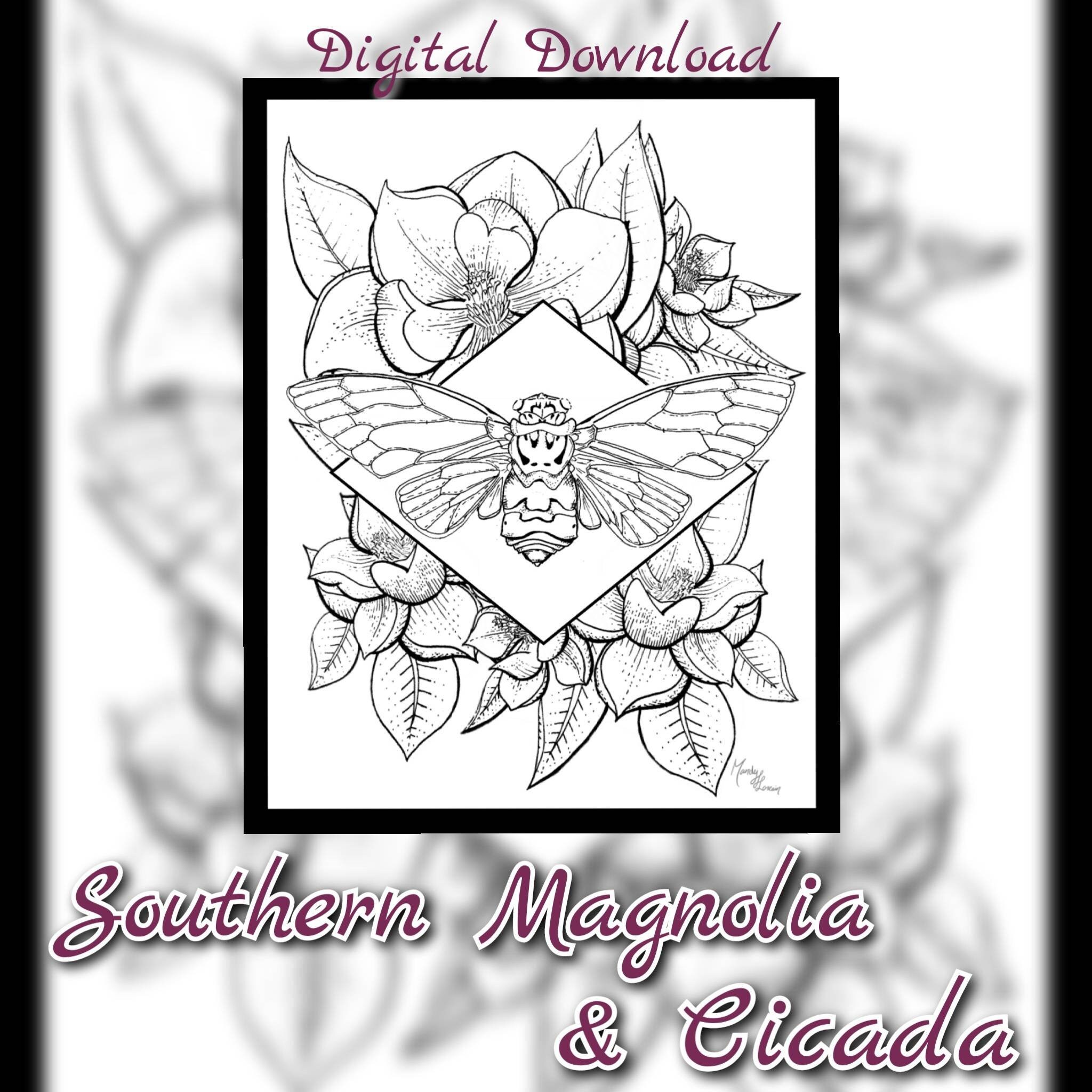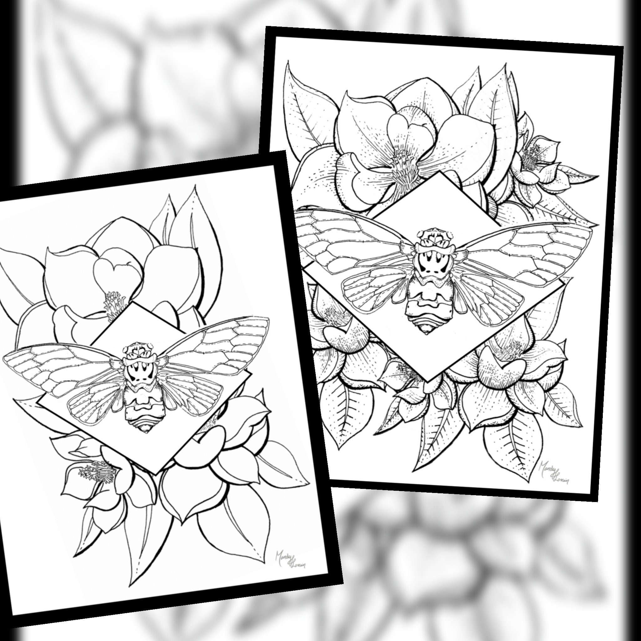 Cicada Coloring Page Adult Coloring Page Insect Coloring Etsy